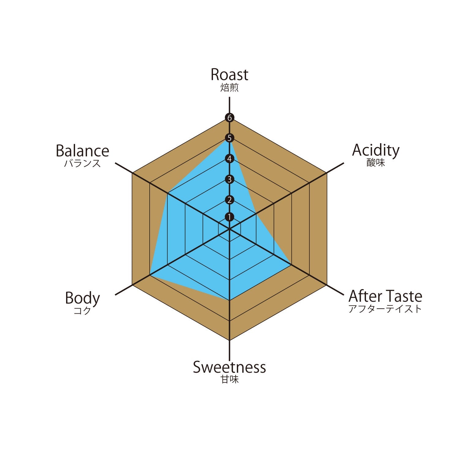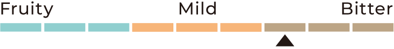 苦みコクの中にやさしく感じる甘み。ダークチョコレートに始まるヘーゼルナッツのような風味、酸味は控えめながら最後にはほのかにフルーティーな後味が残るビター&マイルドなブレンドです。
