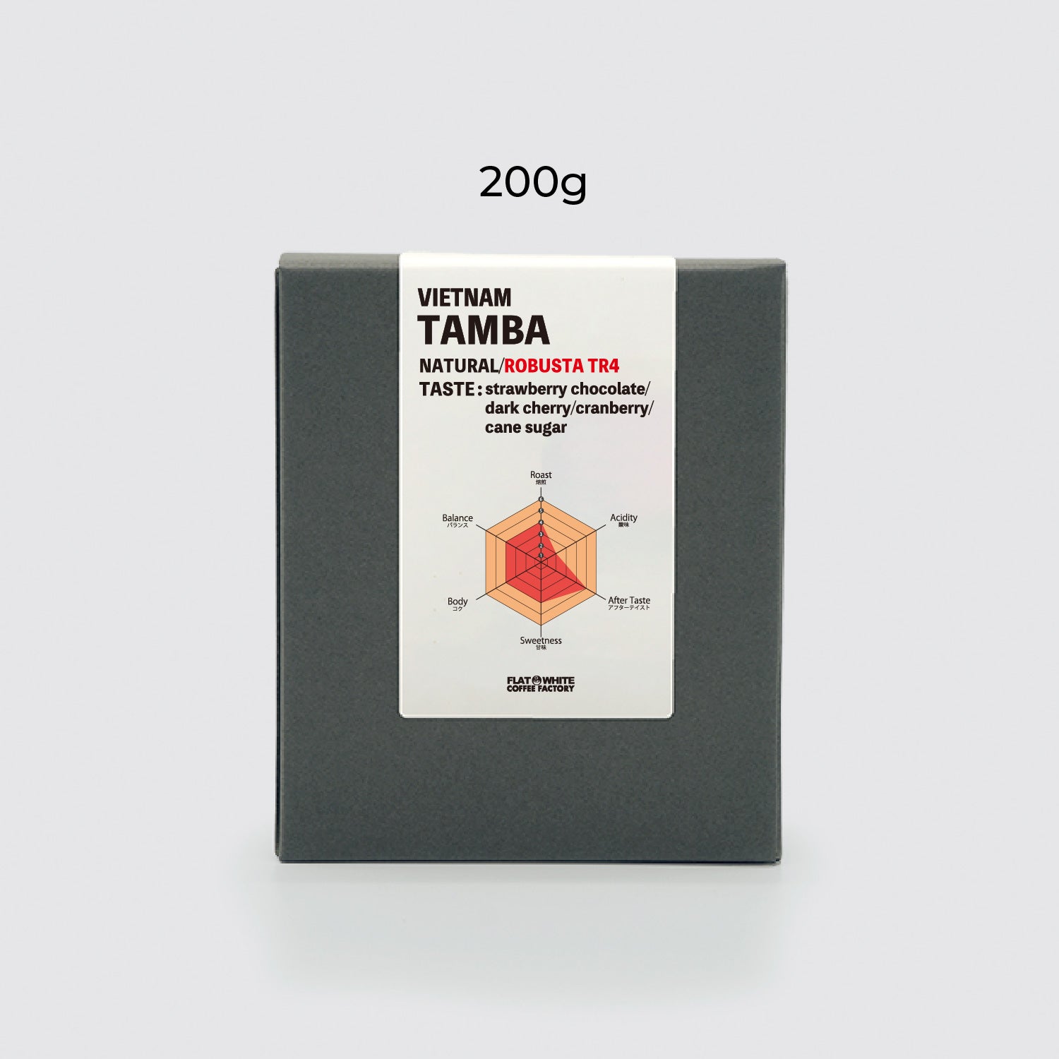 ストロベリーチョコやダークチェリーを思わせる風味に、きび砂糖のような香ばしさ。フルーティーで華やかなニュアンスと豊かな質感の両方を併せ持ち、従来のロブスタ種のイメージを覆す高品質なロブスタ種です。